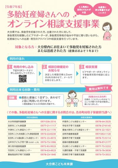 大分県では、多胎児を妊娠された方、出産された方に対して、